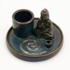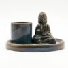Create an instant sense of calm and quiet luxury with this Buddha Incense Plate in ceramic blue. With its rich, flowing glaze and tranquil presence, it’s a piece that naturally draws attention while encouraging slower, more mindful moments. The design features a peaceful seated Buddha set on a circular plate with integrated holders for incense sticks and cones. The deep blue glaze shifts subtly under the light, giving the piece depth and a slightly iridescent finish that feels both modern and spiritual.