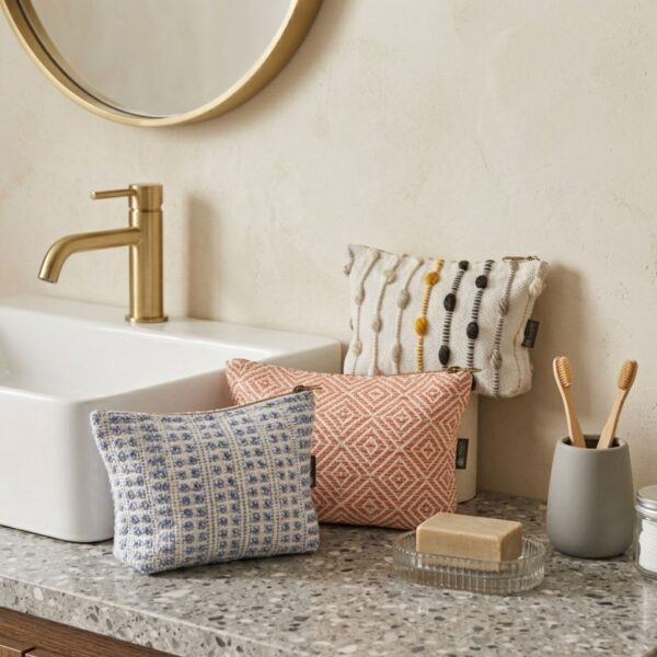 Add a touch of warmth and texture to your everyday essentials with the Coral Maze Jacquard Toiletry Bag. Featuring a soft coral geometric pattern woven into textured fabric, this bag blends practical storage with relaxed boho style. Perfect for makeup, toiletries, travel accessories, or everyday bits and pieces, it’s designed to keep your essentials organised while looking effortlessly stylish.