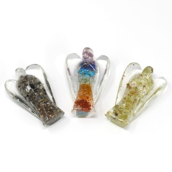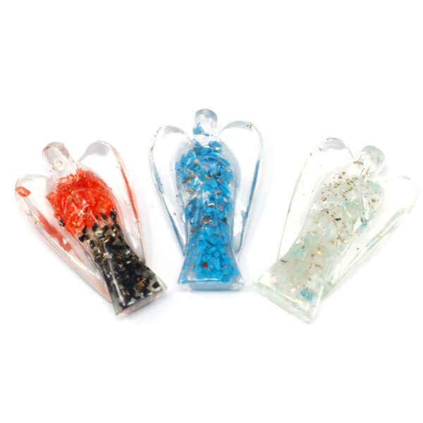 Designed to uplift and inspire, this Orgonite Angel serves as a protective talisman, promoting a sense of peace and well-being. The vibrant gem chips not only add a splash of colour but also enhance the energy flow, making it a perfect companion for meditation or relaxation.