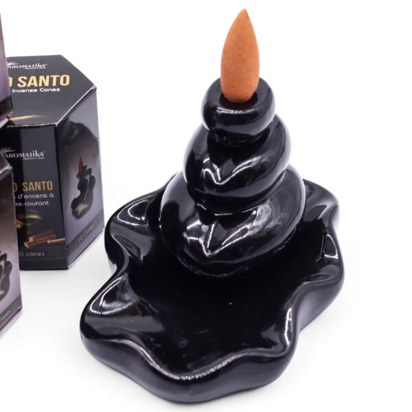 Experience the pure and cleansing aroma with our Masala Backflow Incense – Palo Santo. Each box, uniquely designed in a hexagon shape, contains 10 backflow incense cones. Palo Santo, known for its spiritual and purifying properties, takes your sensory journey to new heights. These cones are designed to create a mesmerizing waterfall effect when burned in a compatible backflow incense burner. Use Palo Santo backflow incense to cleanse your living space, meditation area, or personal aura. Its calming properties invite balance and spiritual well-being into your life.