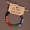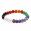 The Power Bracelet – Chakra Stones features a harmonious selection of Amethyst, Rock Quartz, Sodalite, Green Aventurine, Black Agate, Honey Crystal, and Carnelian. Each stone corresponds to one of the seven chakras, offering a distinct array of energies and benefits.