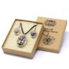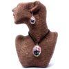 The necklace pendant dimensions are approximately 3.7 x 3 cm and weighs 24g. The earring pendant dimensions are approximately 2.5 x 1.7 cm and weighs 14g. The necklace string measures 70 cm in length, providing an elegant drape around your neck.
