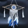 In many ancient cultures, the Evil Eye is revered as a powerful symbol of protection against malevolent forces. This exquisite combination of a Dream Catcher and Evil Eye harnesses the magic of both, creating a beautiful guardian for your space. You can hang it in your bedroom to ward off evil nightmares; the good dreams will pass through the dream catcher, while the bad ones become ensnared in the web, perishing with the first light of dawn.