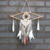 This dream catcher is meticulously handmade, featuring intricate macrame details and a natural rattan frame. Its craftsmanship is evident in the vibrant designs that will enhance your home décor.