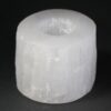 This stunning Selenite Candle Holder is crafted from beautiful translucent selenite, allowing the candle flame to flicker gently through its elegant walls. The natural rough edges of each holder add a unique touch, celebrating the authenticity of the selenite crystal. Its shiny surface occasionally features whiter areas, while the polished top and flat-cut underside enhance its sophisticated design.