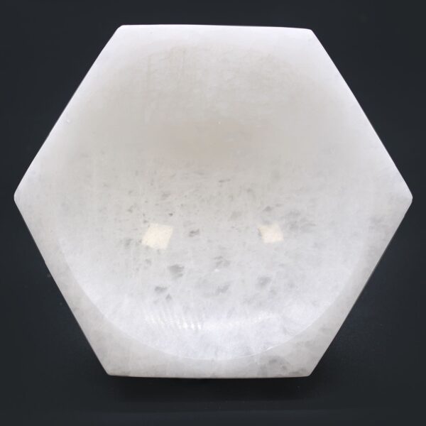 Introducing the exquisite Selenite Hex Bowl, a stunning piece that embodies elegance and serenity. Crafted from high-quality selenite, this bowl not only serves as a captivating decorative item but also enhances the energy of your space. Its unique hexagonal shape adds a contemporary touch, making it a versatile addition to any home decor.