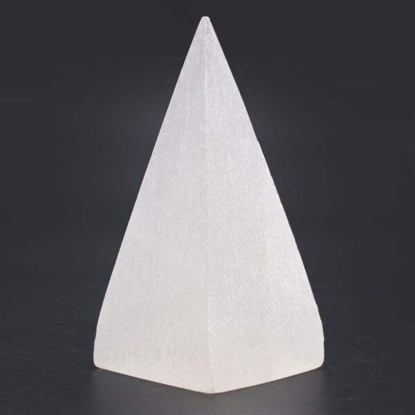 Discover the enchanting beauty of the Selenite Pyramid, crafted from the exquisite crystals sourced from the mountains of Morocco. Named after Selene, the Greek goddess of the moon, this stunning piece exhibits a captivating ability to refract light, reminiscent of a lunar glow.
