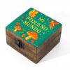 This small mango wood box feels like a tiny world of its own. The enamelled lid features the Mi Pequeño Mundo design, with fairies, moons, mushrooms, and little ladybirds scattered across a rich teal background. It’s playful, gentle, and full of storybook charm. Handmade in India, each box carries natural wood grain and subtle variations that make every piece unique. A metal clasp keeps small treasures safe, making it ideal for jewellery, keepsakes, notes, or childhood mementoes.