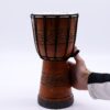 This Small Pro Djembe Drum delivers a deep, earthy tone in a compact size, making it ideal for beginners, casual players, or anyone who loves the feel of hand-played rhythm. Handcrafted at 30cm tall with a drum head diameter of 15cm, this djembe offers a low-pitched sound that’s warm and resonant. The rope-tuned design and natural hide head provide a traditional playing feel, while the carved wooden body adds character and stability.