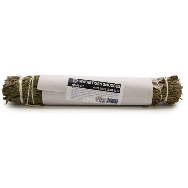 Embrace the art of smudging and transform your surroundings with this exquisite White Sage and Cedar Smudge Stick.