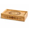 Create a beautiful and organised space for your tarot practice with this Sun Moon Carved Tarot Box with Drawer. Featuring a detailed celestial design with sun, moon, and star motifs, this piece brings both function and atmosphere to your readings. The top surface provides a dedicated area for laying out cards, while the built-in card holder allows you to display your selected cards during readings.