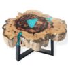 Each table is uniquely characterised by gaps in the wood that have been beautifully filled with aqua-coloured resin, enhancing its individuality. Striking a balance between modern elegance and vibrant energy, this piece will complement a variety of interiors.