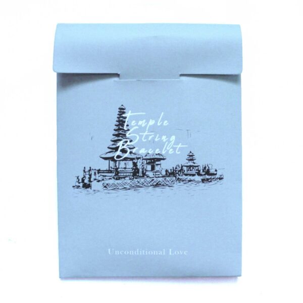 Each Temple String Bracelet – Unconditional Love is packed in a blue paper bag with a short description of its intention: The red coloured string of your bracelet is symbolic of love. It is the bridge between you and everything. By cleansing the mind of negativity, this temple string can elevate your mood and help you get in touch with your inner peace. The spiritual meaning of the heart symbol is all about love and tenderness, but combined with the red string (symbol of endless wisdom), this bracelet is a celebration of never-ending unconditional love.