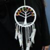 Discover the enchanting Tree of Life Dreamcatcher, a beautifully handcrafted macrame piece that embodies delicate bohemian style. Weighing just 97g and with a diameter of 22cm and a length of 66cm, this dreamcatcher is perfect for adding a touch of elegance to your space.