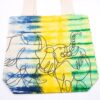Embrace a vibrant style with this Tie-Dye Cotton Bag featuring a captivating Elephants pattern in stunning shades of blue, yellow, and green. The natural handle adds a touch of earthy elegance to its design. Crafted from high-quality cotton, this bag is both soft and durable, making it a reliable companion for all your travels.