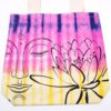 Embrace a touch of vibrant artistry with this stunning tie-dye cotton bag, beautifully adorned with a lotus Buddha pattern in a captivating multicolour shade. The natural handle adds an earthy elegance, making it perfect for any occasion.
