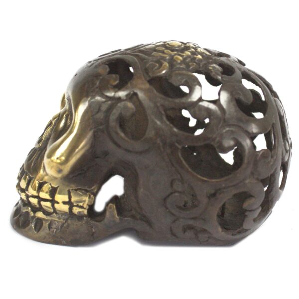 Bring joy and happiness to your home, spa, or sacred space with this exquisite Vintage Brass Skull. This stunning piece serves as an eye-catching and exotic display, enhancing the atmosphere of any setting. Inspired by Eastern traditions, this ornament embodies the principles of Fengshui in an elegant design, effortlessly spreading a sense of peace and tranquility throughout your environment.