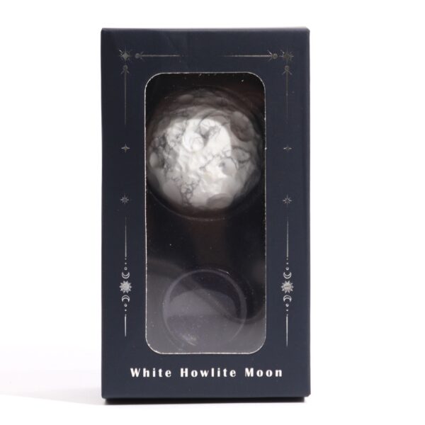 White Howlite embodies the Moon’s calming energy. Its soft, white hues promote peace and emotional balance, fostering patience and inner reflection. White Howlite guides you on a journey of self-discovery. The Solar Goldstone Stand, inspired by the cosmic depths, provides a grounding base for the White Howlite sphere.