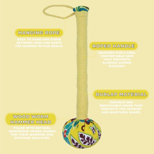 Bright and energising, the Yellow Wormwood Massage Hammer combines bamboo, polyester, and herbal wormwood chips. Use it for rhythmic tapping or light rolling to relax tight muscles and improve comfort. At 30x8cm, it’s a cheerful, practical tool for everyday self-care and stress relief.